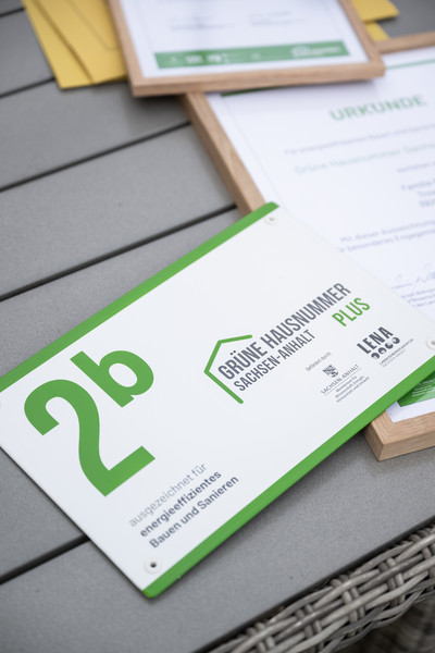 Der von der Landesenergieagentur Sachsen-Anhalt GmbH (LENA) ins Leben gerufene Auszeichnungswettbewerb um die „Grüne Hausnummer Sachsen-Anhalt“ und die „Grüne Hausnummer Sachsen-Anhalt PLUS“ startete im November 2017 und richtet sich an alle Eigentümerinnen und Eigentümer neu erbauter oder sanierter Wohngebäude, wohnähnlicher Gebäude sowie beheizter Nichtwohngebäude, die zum Zeitpunkt der Bewerbung definierte Energiestandards oberhalb der gesetzlichen Mindestanforderungen erreichen oder eine Vorreiterrolle im Bereich des nachhaltigen Bauens und Sanierens einnehmen.