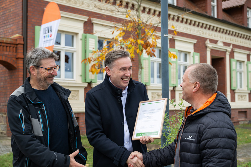 Überreicht wurden die beiden individuell angefertigten Hausnummern heute durch Energiestaatssekretär Thomas Wünsch, den Bürgermeister der Stadt Burg, Philipp Stark, Thomas Rochel von der Ingenieurkammer Sachsen-Anhalt und dem Prokuristen der Landesenergieagentur Sachsen-Anhalt (LENA), Dirk Trappe. Zusätzlich erhielten die Familien eine Urkunde als Anerkennung für ihr besonderes Engagement im Interesse des Klimaschutzes. Auch die an der Sanierung bzw. am Bau beteiligten Handwerksfirmen aus Sachsen-Anhalt wurden mit einer Urkunde gewürdigt.