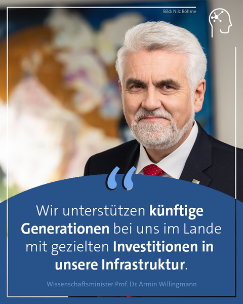 „Wir haben nicht nur ein hohes Zutrauen in die künftigen Generationen, wir unterstützen sie auch bei uns im Lande mit gezielten Investitionen in unsere Infrastruktur“, betonte Wissenschaftsminister Prof. Dr. Armin Willingmann. „Unsere Hochschulen und Forschungseinrichtungen bilden nicht nur die klugen Köpfe von morgen aus, sie sind für Unternehmen verlässliche Partner für Innovationen. Umso wichtiger ist es, dass wir mit Hilfe der Bundesmittel jetzt aufgeschobene Investitionen anstoßen, in Zeiten des Klimawandels Energieeffizienz fördern und den Wissenschaftsstandort insgesamt attraktiv und zukunftsfähig aufstellen.“