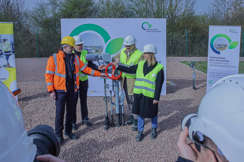 Für den Hochlauf der Wasserstoffwirtschaft im Lande ist auch die Entwicklung des Energieparks Bad Lauchstädt von zentraler Bedeutung. Hier soll erstmalig die gesamte Wertschöpfungskette von grünem Wasserstoff im industriellen Maßstab erprobt werden. Mittels einer Großelektrolyse-Anlage mit einer Leistung von 30 Megawatt soll künftig unter Einsatz von erneuerbarem Strom aus dem nahe gelegenen Windpark grüner Wasserstoff produziert werden. In einer eigens dafür gesolten Salzkaverne zwischengespeichert, kann der grüne Wasserstoff dann über die umgestellte Gaspipeline auch in das schon bestehende Wasserstoffnetz der chemischen Industrie eingespeist werden.