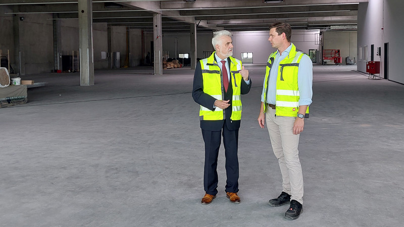 Erneuerbare Energien wie Windkraft und Photovoltaik stehen nicht immer gleichermaßen zur Verfügung. Damit Unternehmen und Haushalte dennoch sicher und verlässlich in der Nacht oder bei Windstille versorgt werden können, werden landesweit Energiespeicher benötigt. Im Rahmen seiner Energie-Sommertour hat Energieminister Prof. Dr. Armin Willingmann am heutigen Montag den Batteriespeicher-Hersteller Tesvolt in Wittenberg besucht. Neben dem Besuch der im Bau befindlichen Gigafactory stand ein Austausch mit der Geschäftsleitung über die aktuellen, teils schwierigen internationalen Wettbewerbsbedingungen auf der Agenda. So will sich Willingmann dafür einsetzen, dass Hersteller wichtiger Zukunftstechnologien in Deutschland künftig noch gezielter unterstützt werden.